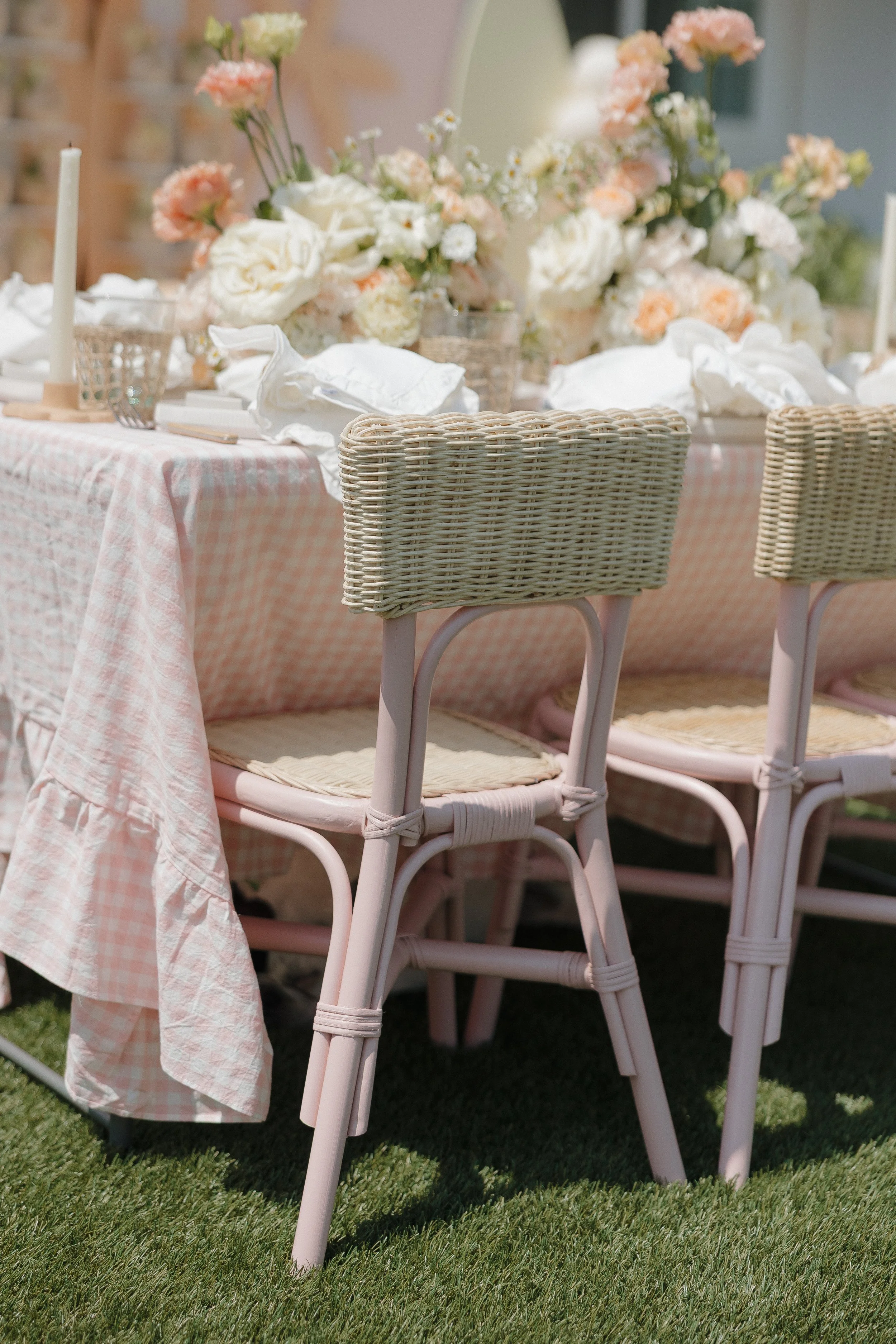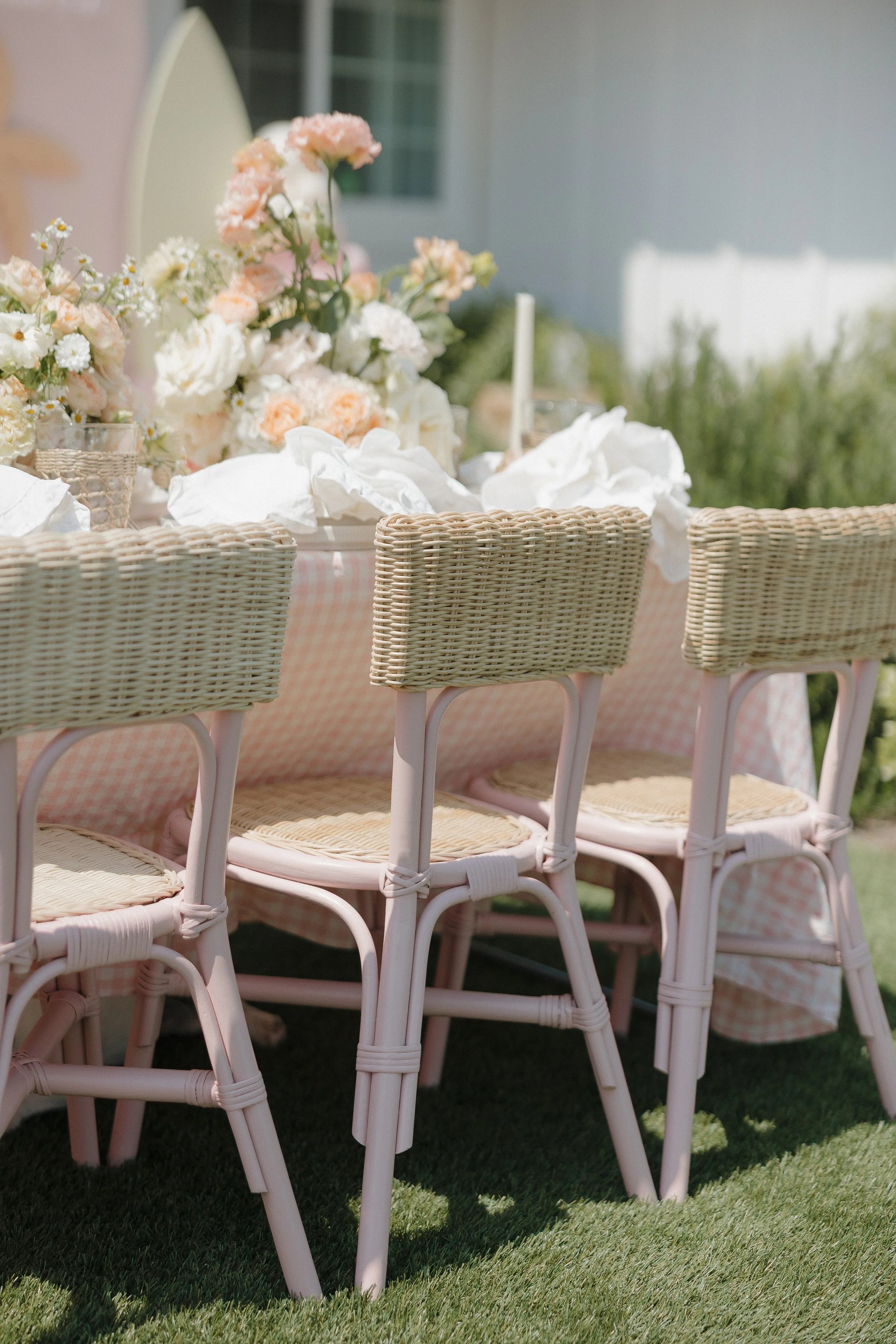 Pink Rattan Kids Chair.